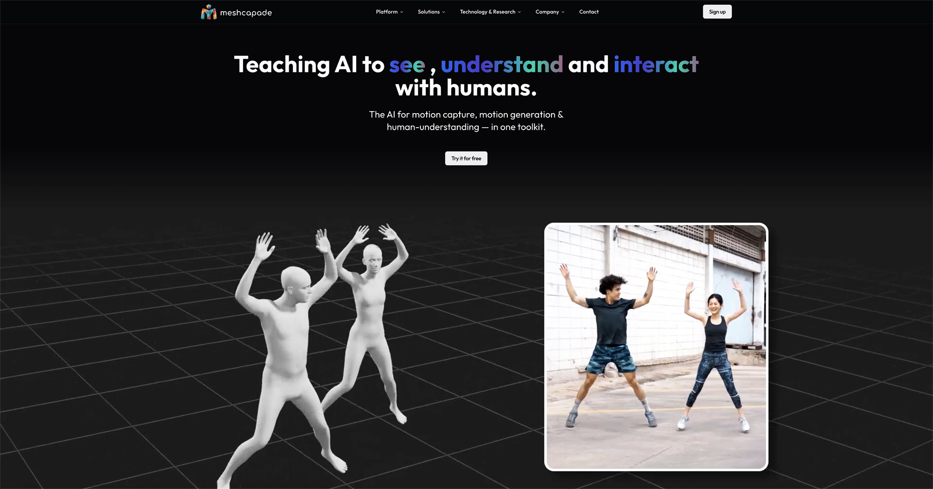 On the character side, Meshcapade gives you realistic digital humans on tap. Feed it photos, scans or other inputs, and it generates rigged 3D characters that behave consistently across shots and projects. Once those avatars exist, they can become: