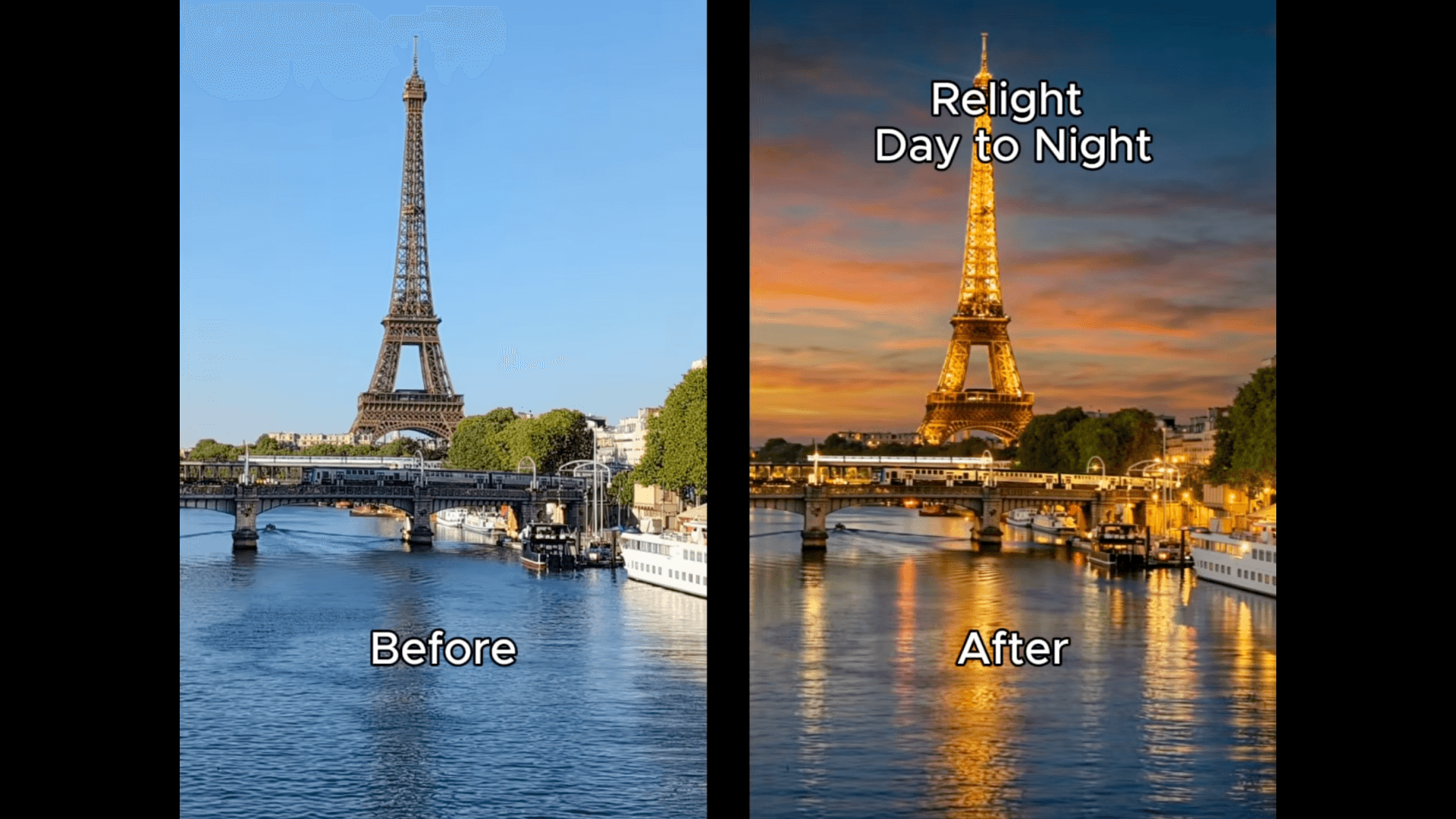 This is perfect when you don’t want to replace objects or environments, but you do want to transform the mood. Turn midday into dusk. Make flat lighting cinematic. Restyle an entire scene without altering its physical layout.