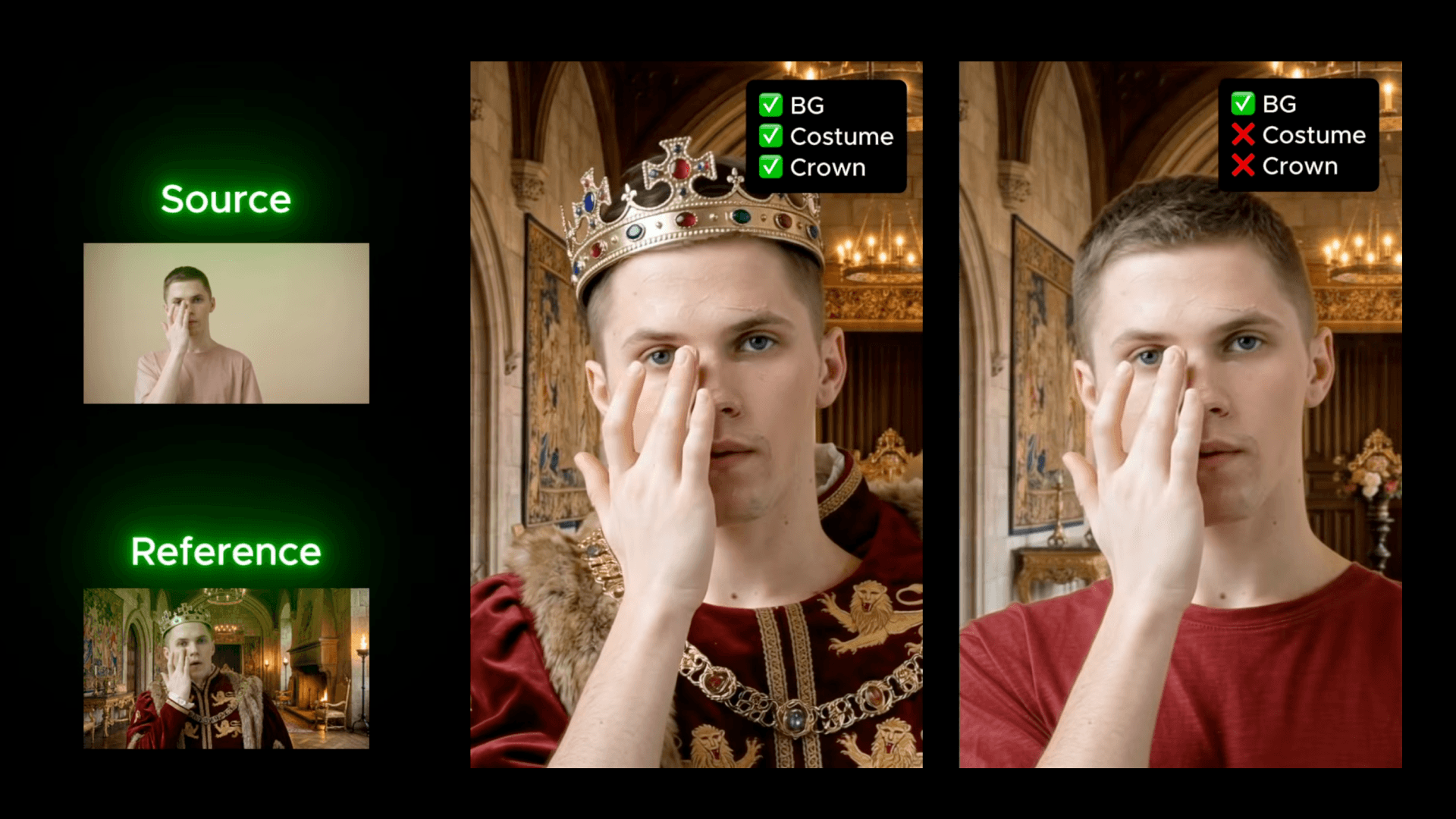 Instead of letting the system decide, you tell it exactly what to keep. You can isolate a face, hands, or any object in the frame, preserving identity while transforming everything else.