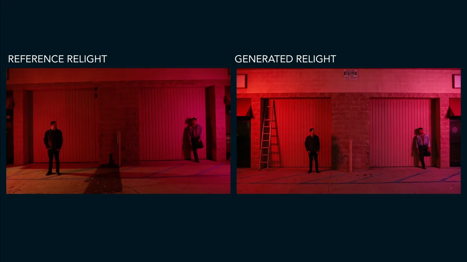 Instead of generating a look with prompts, Alden used his own nighttime reference shots to drive the relight. This anchored the relighting process in real-world lighting direction and intensity rather than randomised AI outputs.
