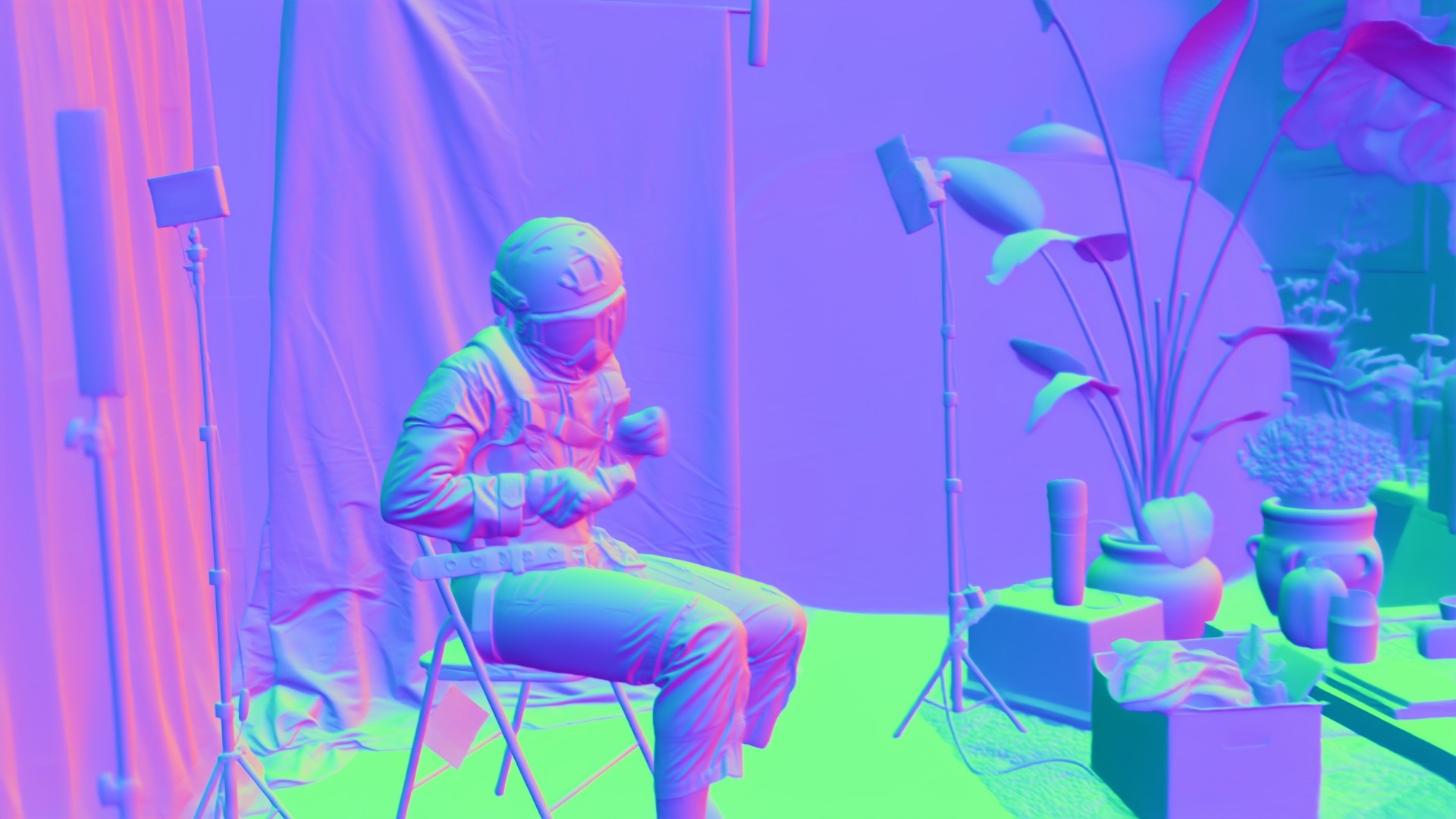 Using Beeble Studio with local processing, Alex generates a full set of passes, including normals, which are key to relighting, plus depth and material maps.