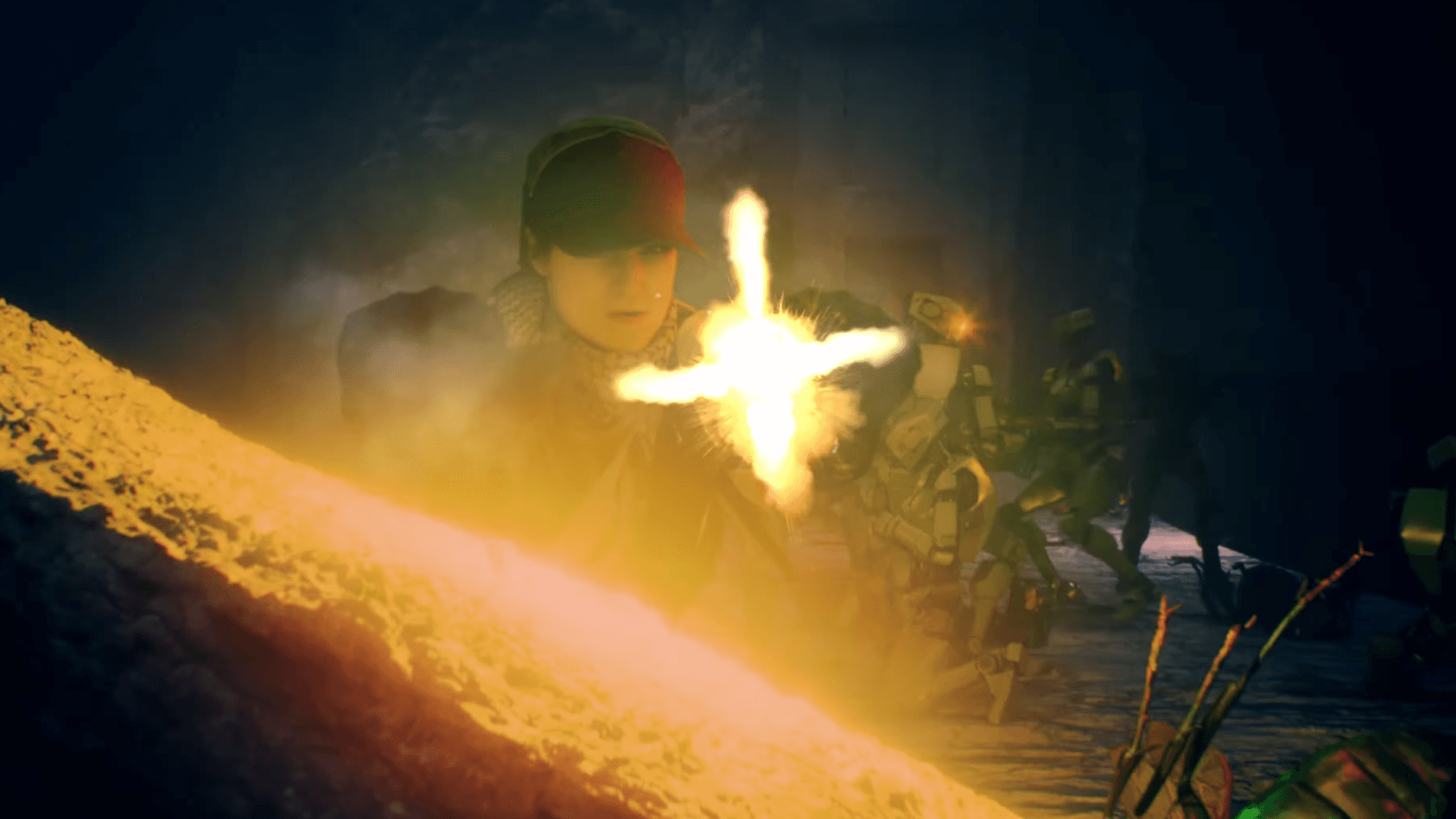 Steve: Shots on the bridge: gunfire going off in Unreal, lights flashing, and the footage being relit with those gun flashes. There's no way I could have done that with anything else.