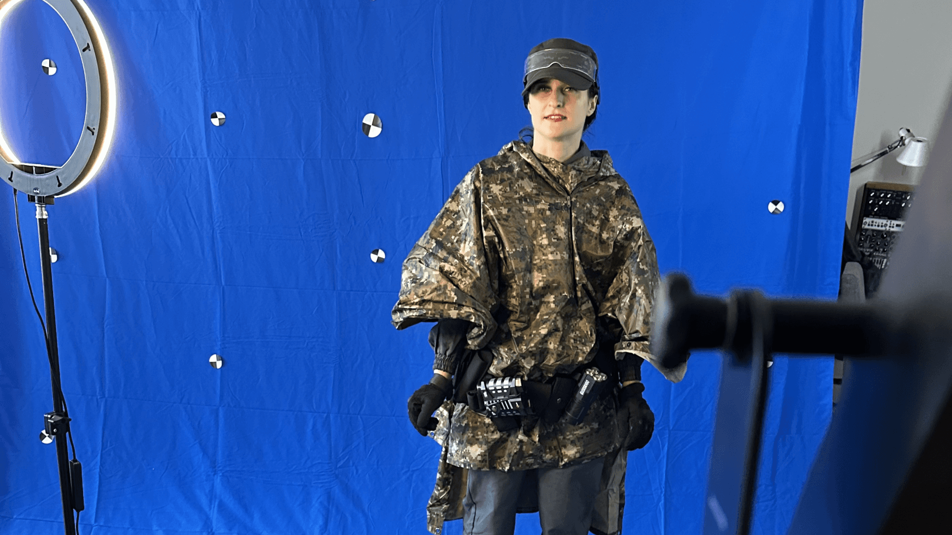 For me, Beeble became a huge time-saver and an essential tool for combining real performances with CG environments. We shot everything in our flat, sometimes with an iPhone mounted above the camera for tracking reference. The footage then went straight into Beeble's web editor, which handled the rotoscoping and keying, and let us relight Izi to sit naturally inside the Unreal environments – from overall mood and direction to interactive details like gunfire flashes.